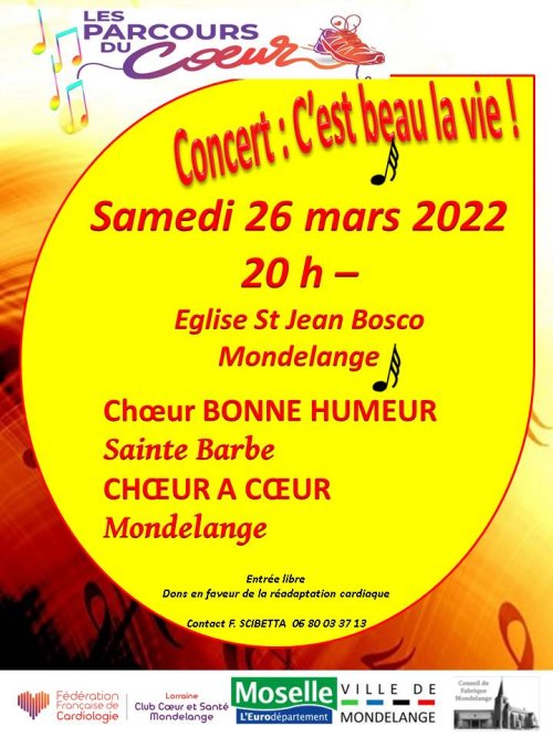Une soirée CONCERT aura lieu le 26 mars à St Jean Bosco Mondelange (voir Flyer ci-dessous)
