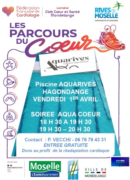 Une soirée AquaCoeur au centre aquatique d’Hagondange le 1er avril (voir flyer ci-dessous)